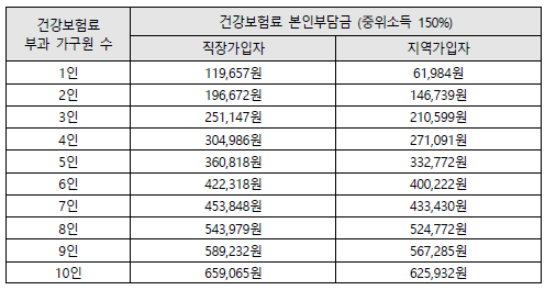 - 2024년 2월 기준 중위소득 150% 이하(건강보험료 월 부과액 기준)